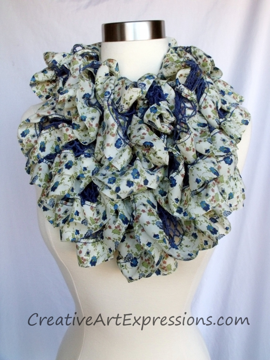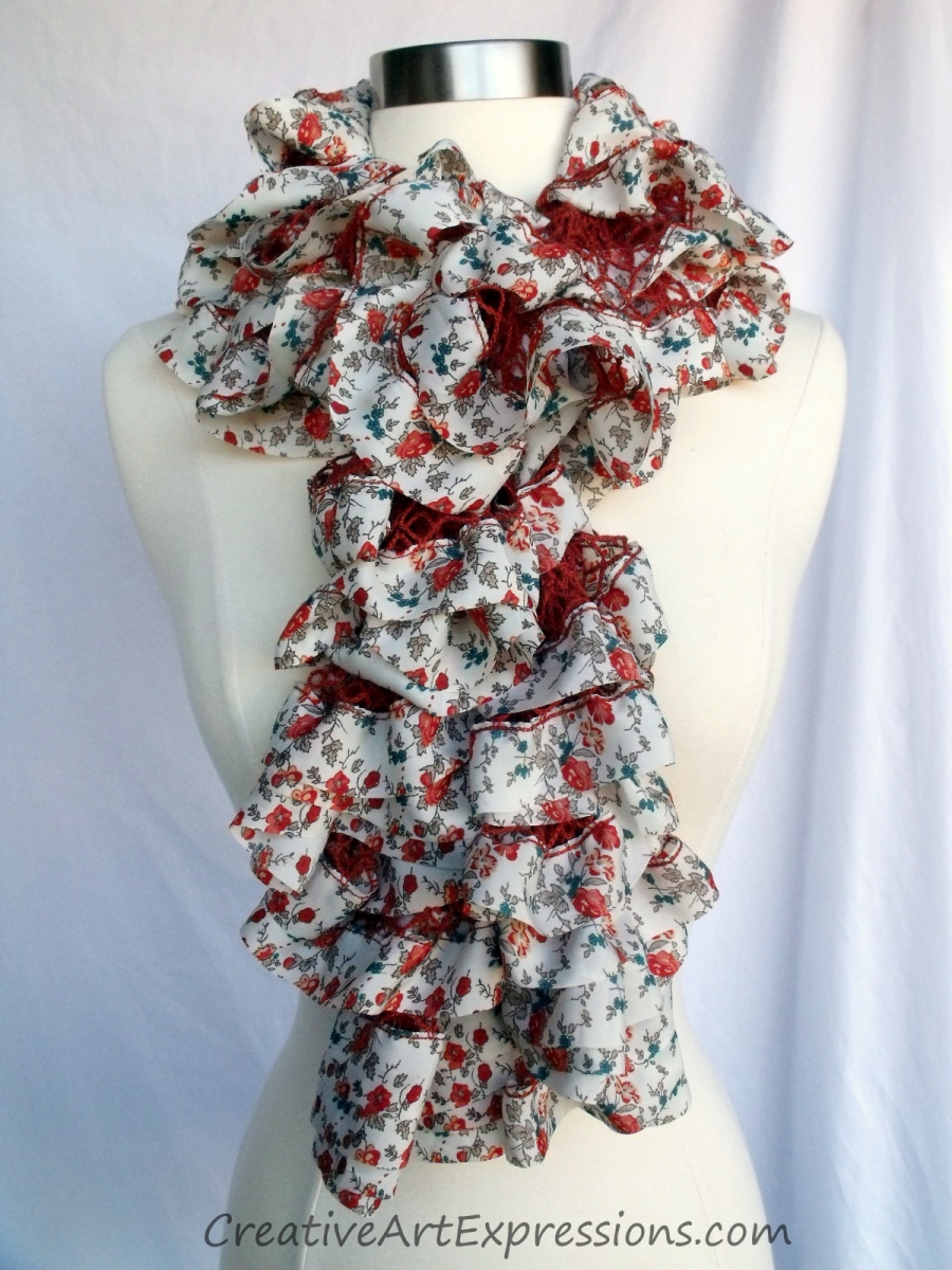Creative Art Expressions Hand Knitted Fabric Lined Ruffle Scarves