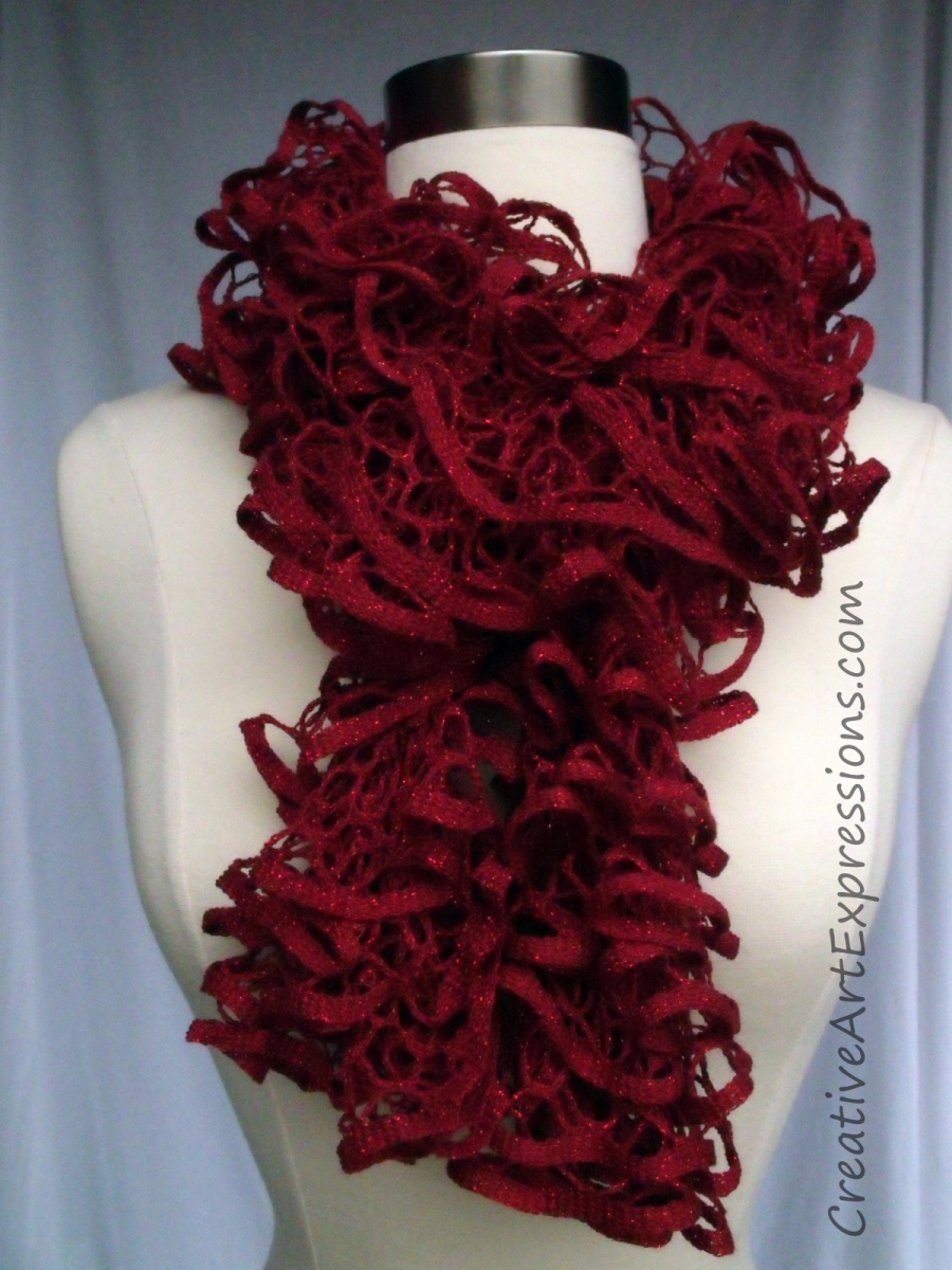 Creative Art Expressions Hand Knit Ruby Red Glam Ruffle Scarf