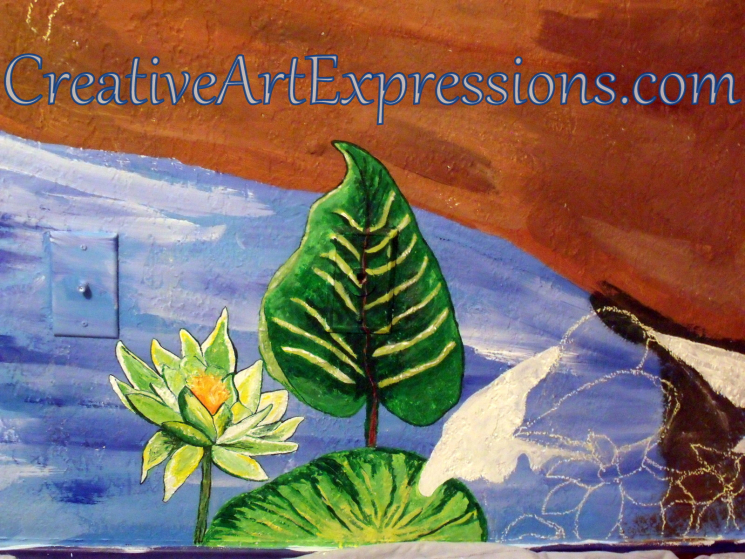 Creative Art Expressions Hand Painted Water Lily On Rainforest Mural In Progress. 8-23-2011
