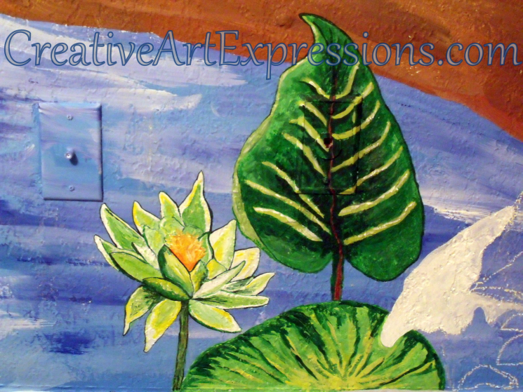 Creative Art Expressions Hand Painted Water Lily On Rainforest Mural In Progress. 8-23-2011