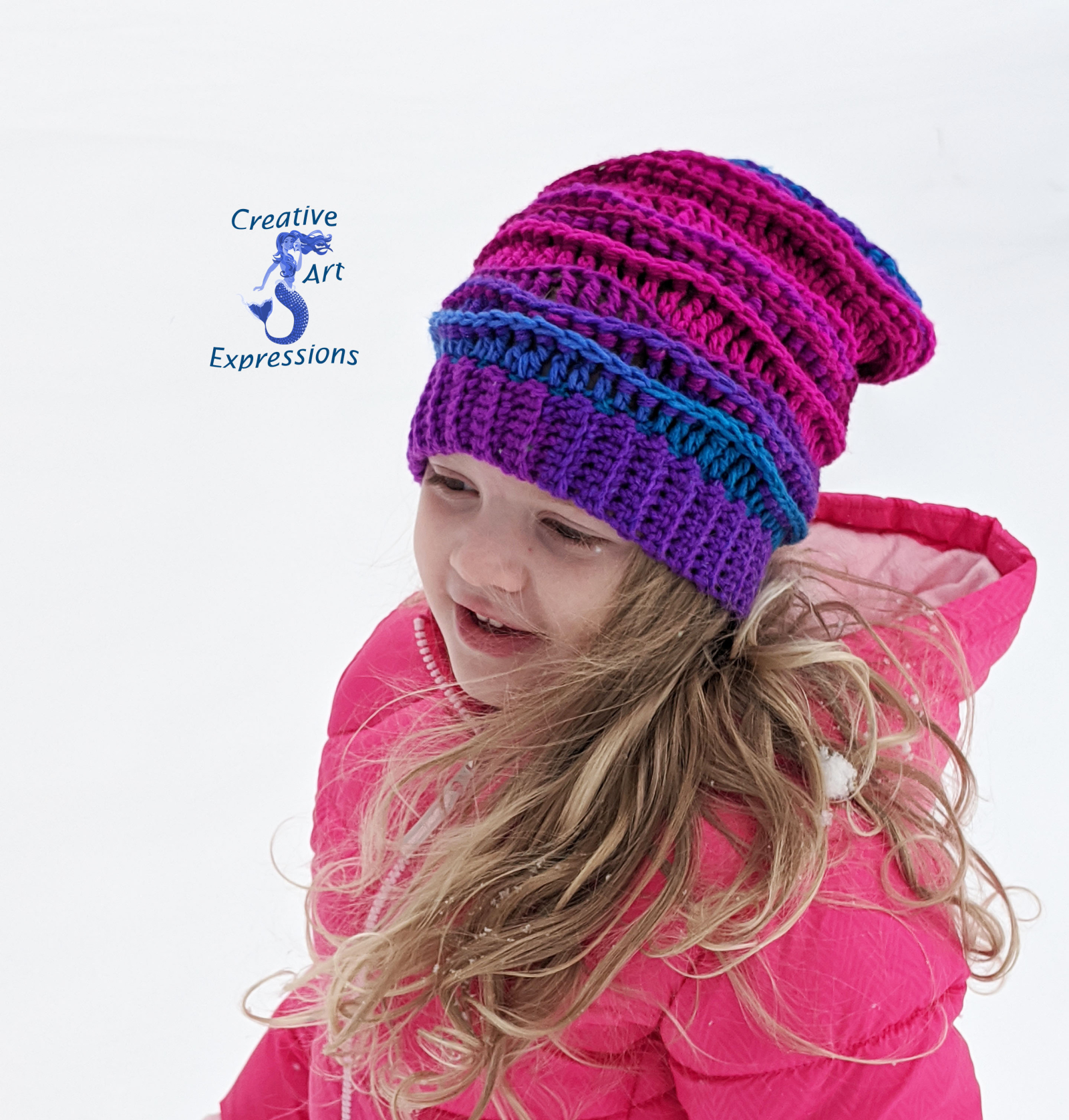 Crocheted Ocean Deep Slouchy Sea Breeze Hat, Child Size 2T-5 years, Sea Breeze Collection, Mermaid Fashion, Unique Gifts, Handmade winter hat, Mermaid at Heart, Ocean Crochet, Coastal Crochet, Crochet with Meaning