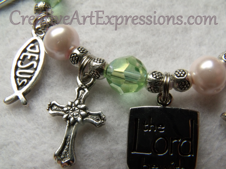 Creative Art Expressions Handmade Pink and Green Christian Charm Bracelet Jewelry Design