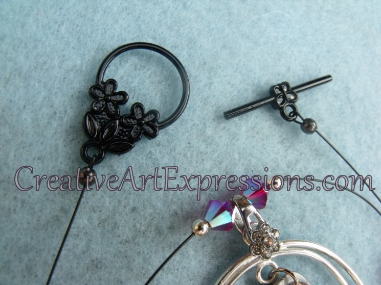 Creative Art Expressions Handmade Pink/Blue Crystal & Black Wire Floating Necklace Jewelry Design