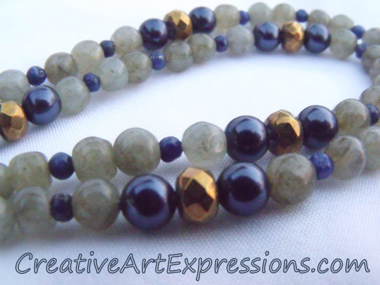 Creative Art Expressions handmade labradorite & lapis lazuli horse necklace jewelry design is 27 1/4 inches long. It features a bronze plated zinc alloy approx. 30mm x 28mm x 3mm horse pendant. It is also made with: