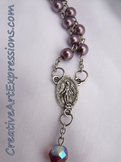 Sold-$30.00 Creative Art Expressions Handmade Dark Purple Glass Pearl Rosary