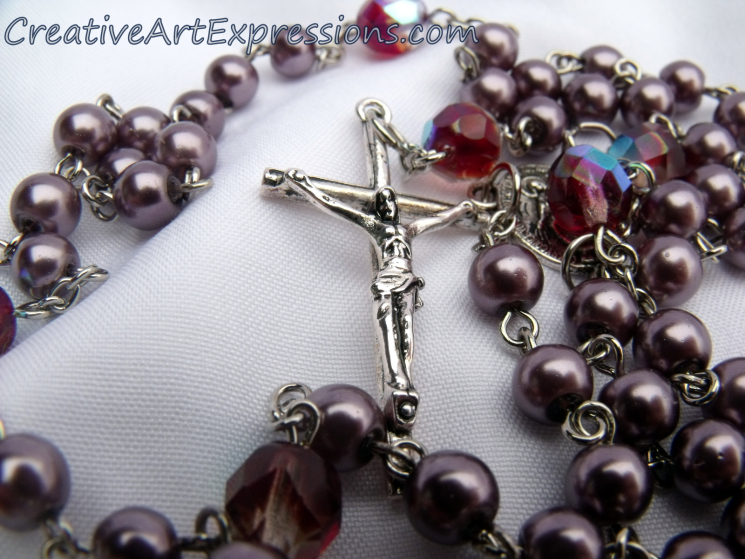 Sold-$30.00 Creative Art Expressions Handmade Dark Purple Glass Pearl Rosary