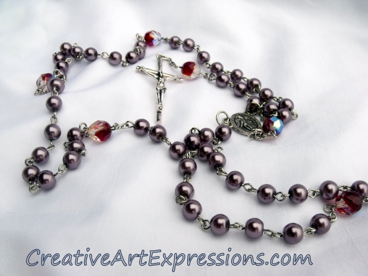 Sold-$30.00 Creative Art Expressions Handmade Dark Purple Glass Pearl Rosary