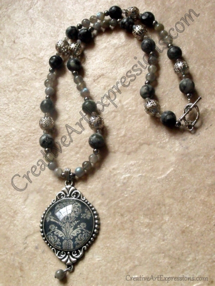 Creative Art Expressions Handmade Labradorite Silver & Green Circle Pendant Necklace