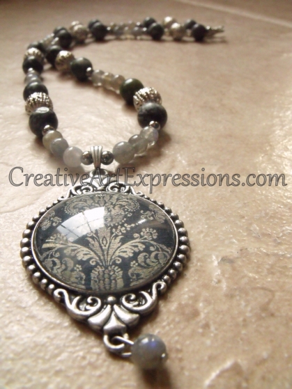 Creative Art Expressions Handmade Labradorite Silver & Green Circle Pendant Necklace