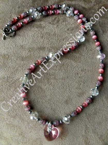 Creative Art Expressions Handmade Pink Crystal Heart Necklace Jewelry
