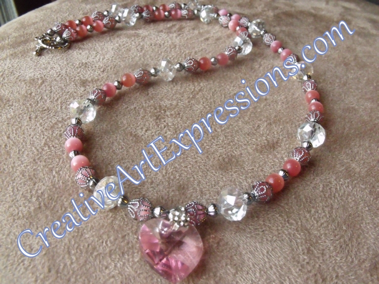 Creative Art Expressions Handmade Pink Crystal Heart Necklace Jewelry