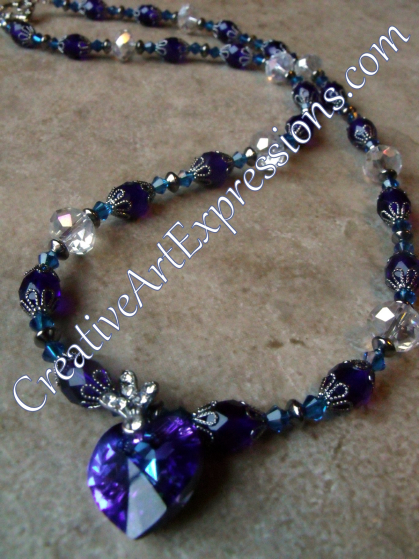 Creative Art Expressions Handmade Purple & Blue Crystal Necklace Jewelry