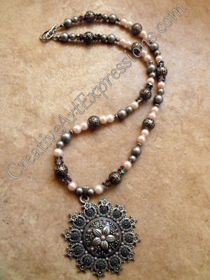 Creative Art Expressions Handmade Pink & Silver Flower Pendant Necklace Jewelry