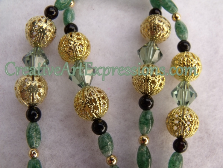 Creative Art Expressions Handmade Bird Pendant Green Black & Gold Necklace Jewelry