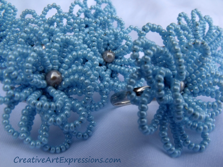 Creative Art Expressions Handmade Baby Blue Seed Bead Flower Ring Jewelry. Set of 7 for bridesmaids. View rings for sale here: http://www.creativeartexpressions.com/catalog/rings
